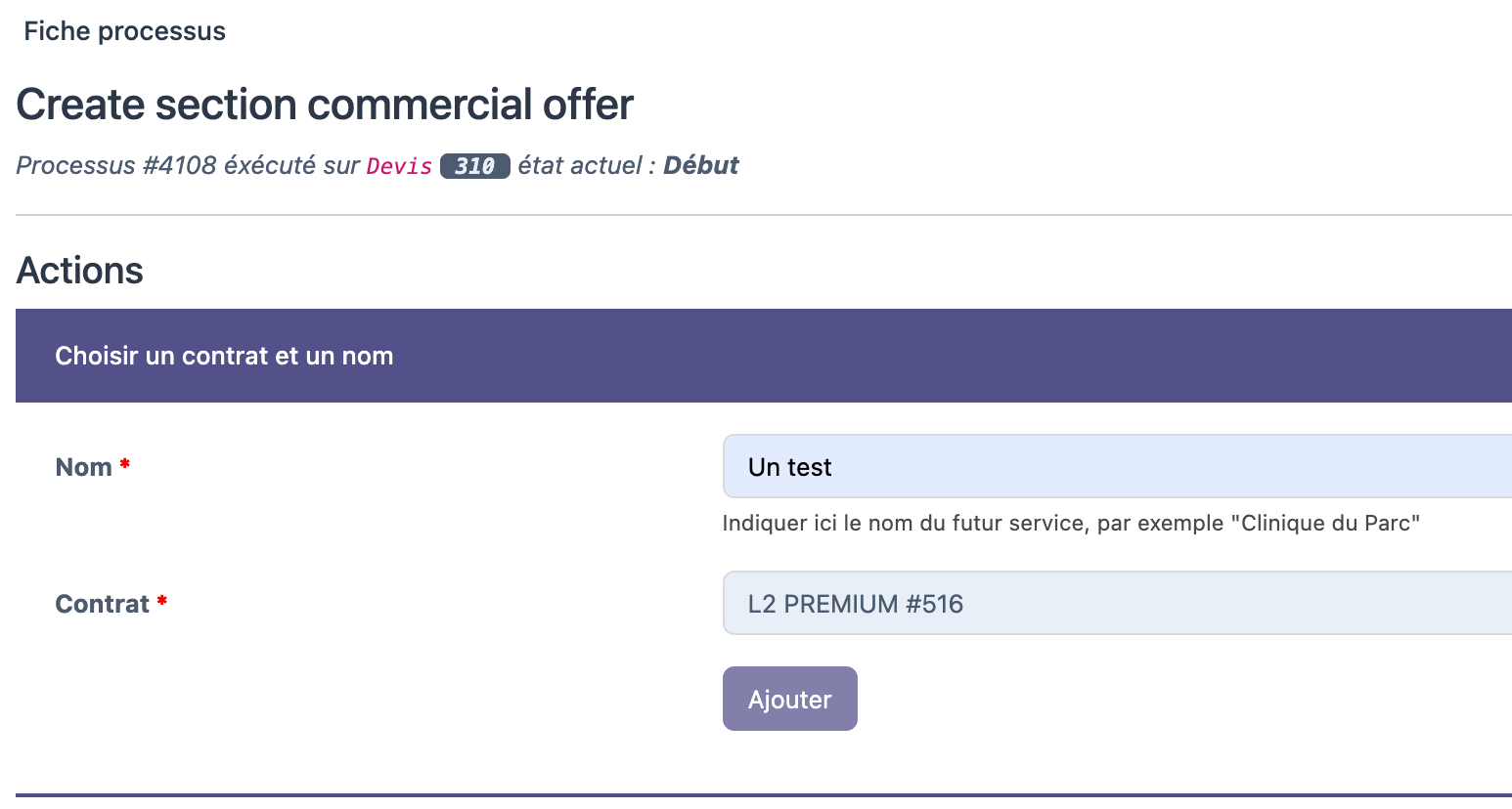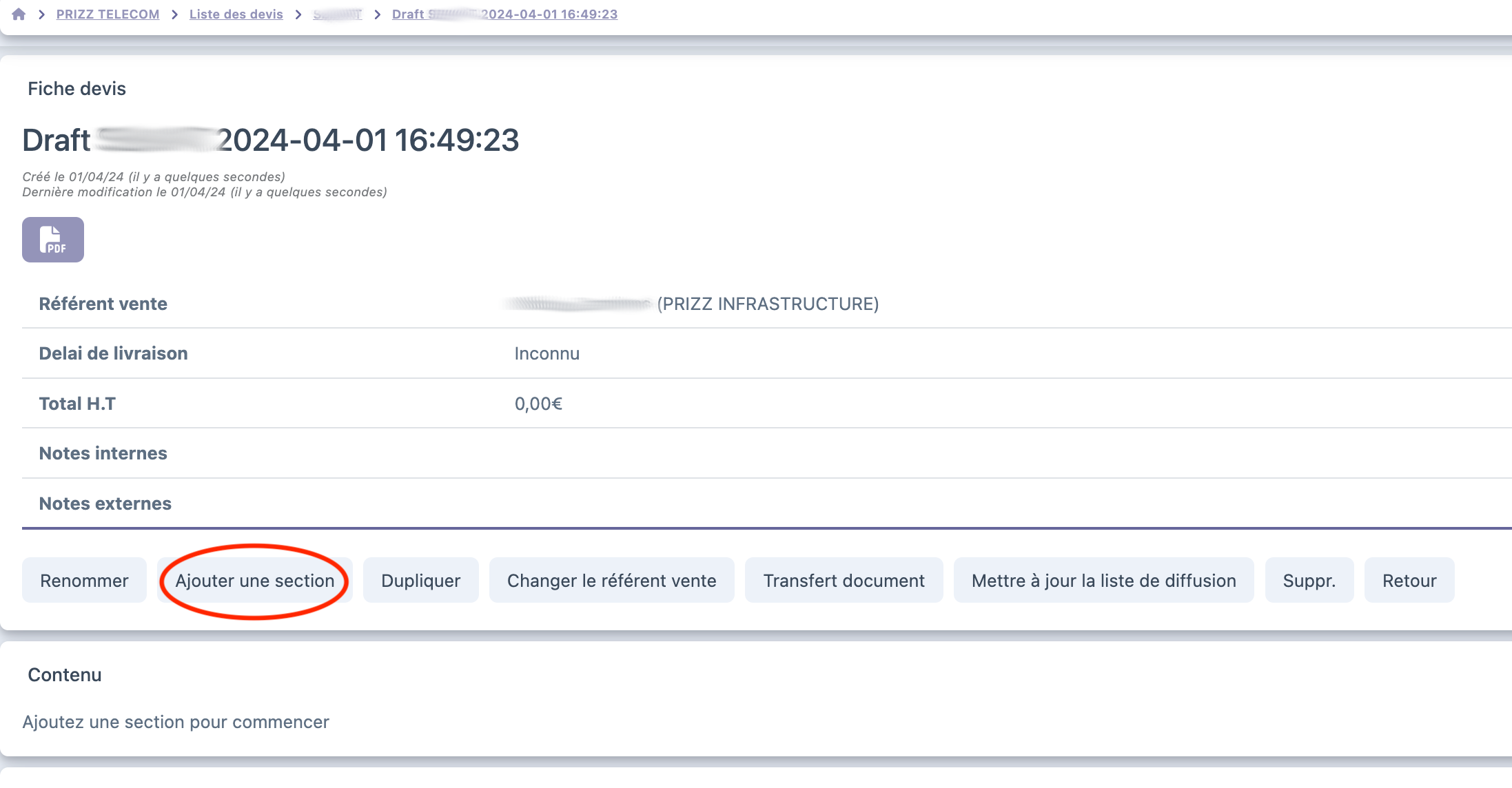 Votre devis est créé, vous pouvez maintenant y ajouter une section
