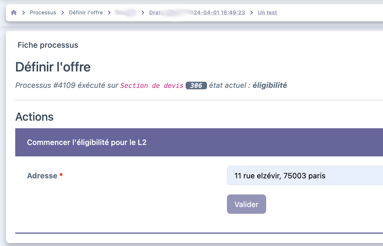 A l’étape suivante vous devrez choisir l’adresse, un test d’éligibilité est rejoué